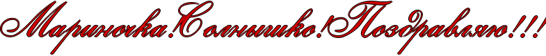 МАРИНОЧКА! ОТ ВСЕЙ ДУШИ ПОЗДРАВЛЯЮ!!!!! КРЕПЧАЙШЕГО ТЕБЕ ЗДОРОВЬЯ, НАСТОЯЩЕГО ЖЕНСКОГО СЧАСТЬЯ, УДАЧИ, РАДОСТИ, ДОБРА... ОДНИМ СЛОВОМ, ВСЕ БЛАГА МИРА К ТВОИМ НОГАМ!!!!!!!!!!!!!! Маргарита