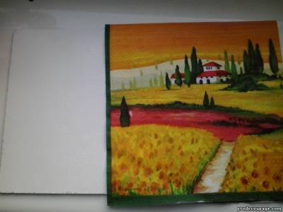 Долго выбирала салфетку,решила остановиться на больших подсолнухах (впрочем они почти на всех салфетках).Сначала фон хотела сделать светлым: цвет слоновой кости, показалось слишком просто, решила применить новые знания с последнего урока - нанести тени. Теперь, по-моему, перестаралась. Может фон осветлить?